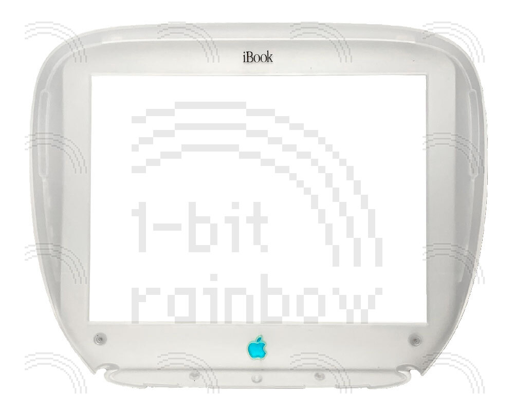 Original Apple Blueberry display bezel and bezel shield for the original models of iBook G3 Clamshell. This A-grade item will have no cracks around the Apple logo.