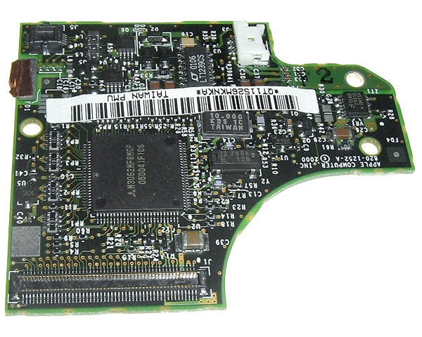 Power management unit (PMU) board for 400MHz & 500MHz models of Titanium PowerBook G4. The PMU board stores settings for controlling various functions including backlighting, hard drive spin down, sleep and wake, some charging aspects and trackpad control.