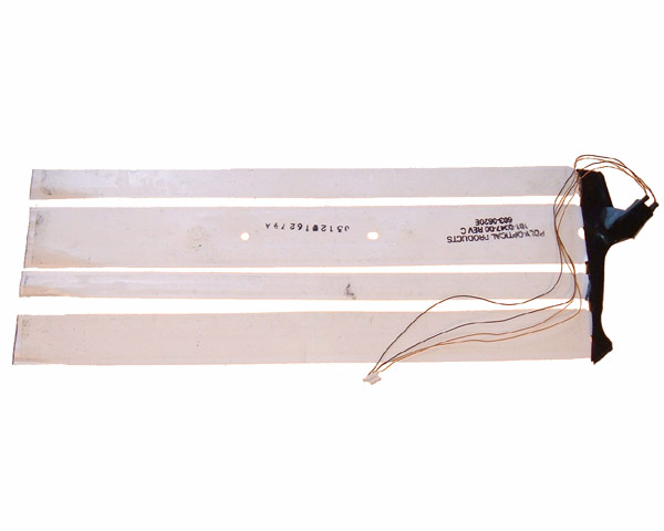 Keyboard backlight cabling, lamps and fibre mats for the 1GHz, 1.33GHz & 1.5GHz models of 17" Aluminium PowerBook G4 only. This complete assembly includes the white fibre optic strips which thread through the top case into the keyboard bay. these must be fixed in place with double sided tape.