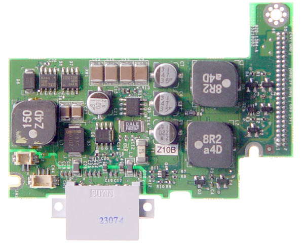 DC to DC board for the 867MHz model only of 12" Aluminium PowerBook G4. This board connects between the logic board and the battery.