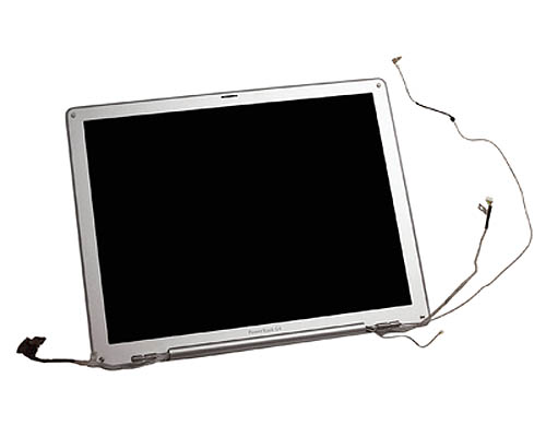 Complete top lid for 1GHz, 1.33GHz & 1.55GHz models of 12" Aluminium PowerBook G4 including outer case, bezel, LCD panel, LVDS cable, inverter cable, Airport/bluetooth antenna, magnetic catch, hinges, hinge cover & inverter board.
