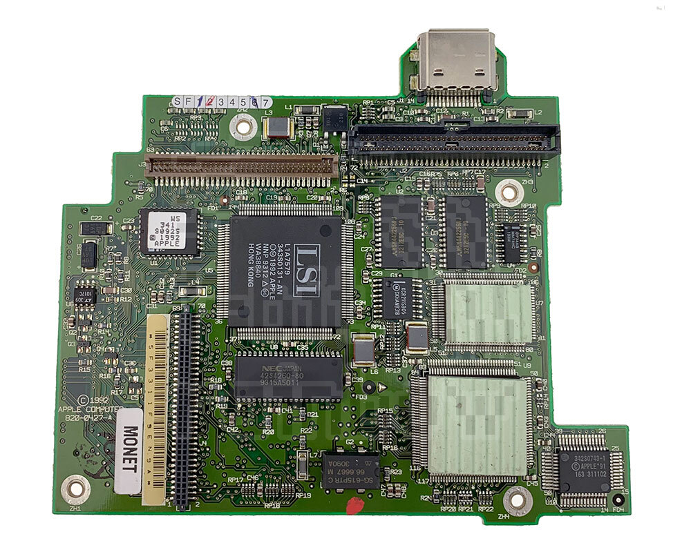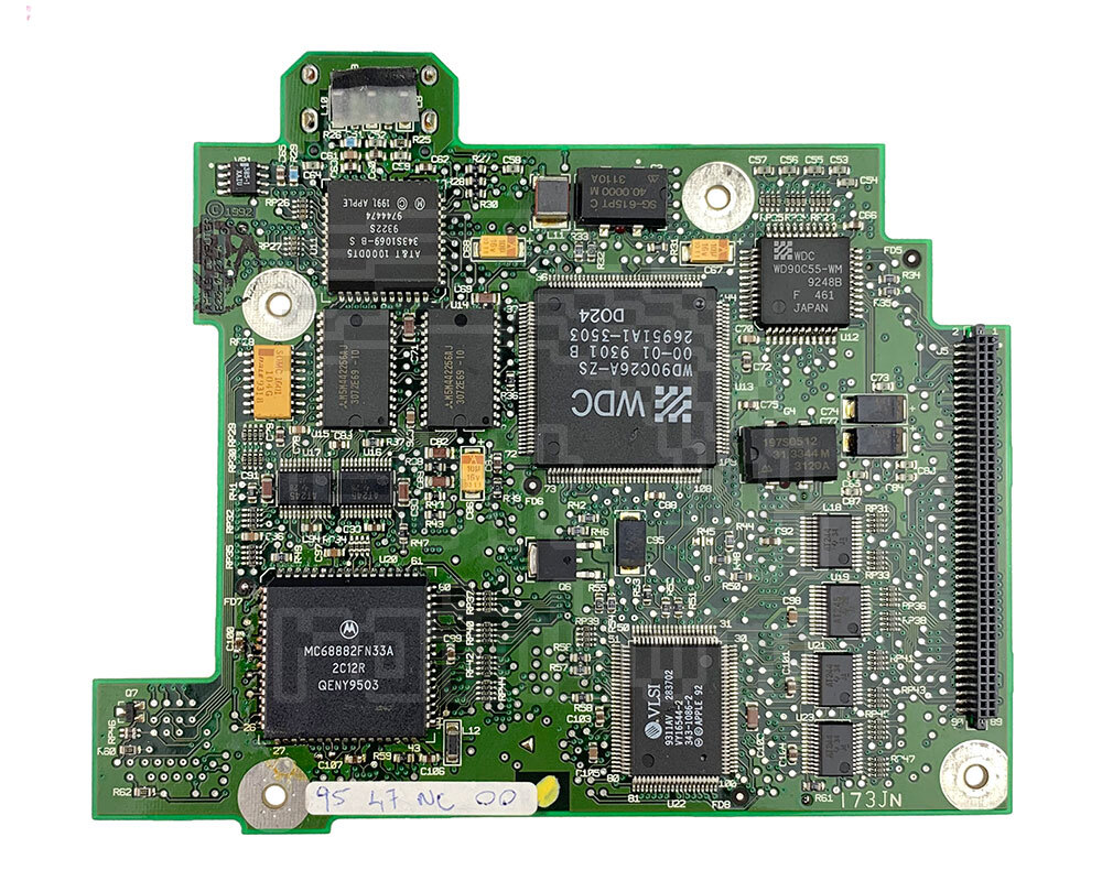 New, boxed, original Apple service spare daughterboard for the PowerBook 165c model only. This board consists of a 33MHz Motorola 68030 microprocessor with a Motorola 68882 coprocessor. This board also contains the external video port (Mini-15). Although the board is almost identical to the 180c daughterboard and carries the same part number, the 165c board has an additional Western Digital chip providing support for FSTN LCD panels. This chip is missing from the 180c board.