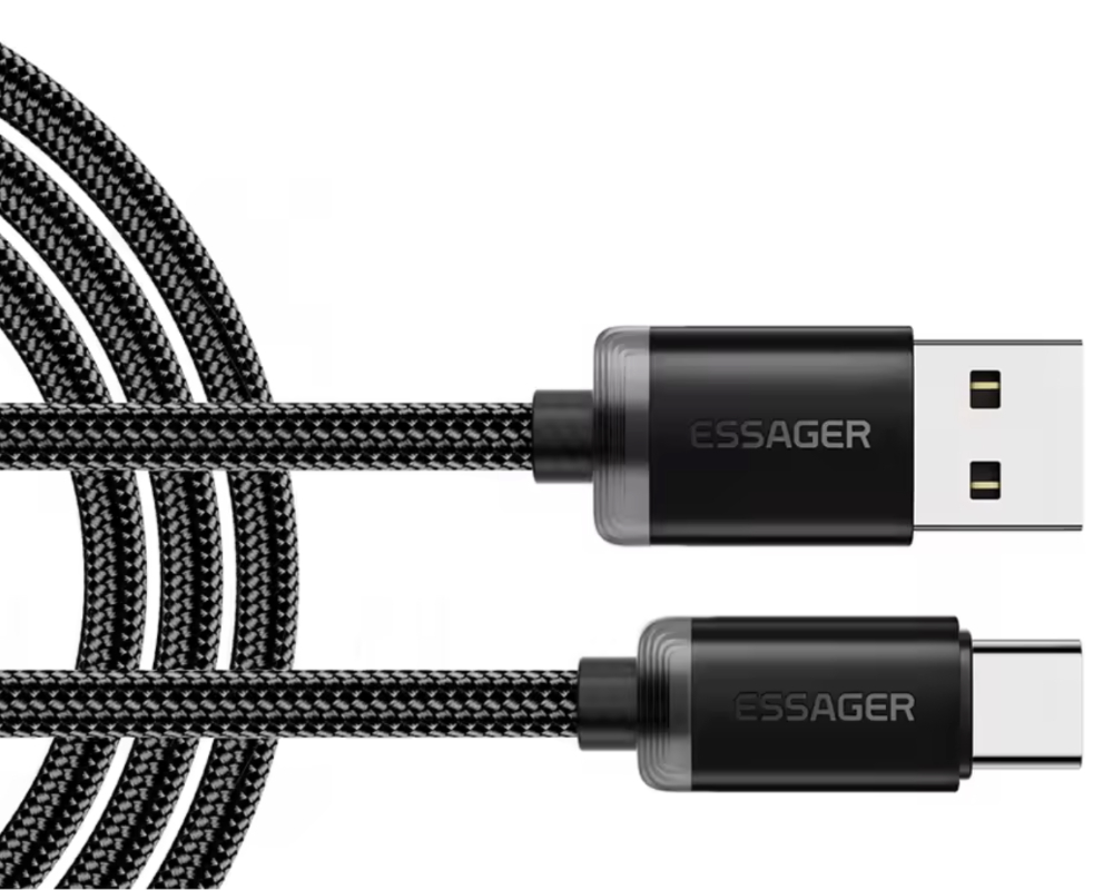 New Essager branded, premium, 1m, black braided, USB-A to USB-C data cable providing up to 60W of power as well as data. Suitable for use powering a pico-mac-nano as well as connecting it to a computer for flashing new firmware.