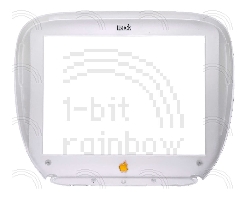Original Apple Tangerine display bezel and bezel shield for the Original models of iBook G3 Clamshell. This A-grade item will have no cracks around the Apple logo.