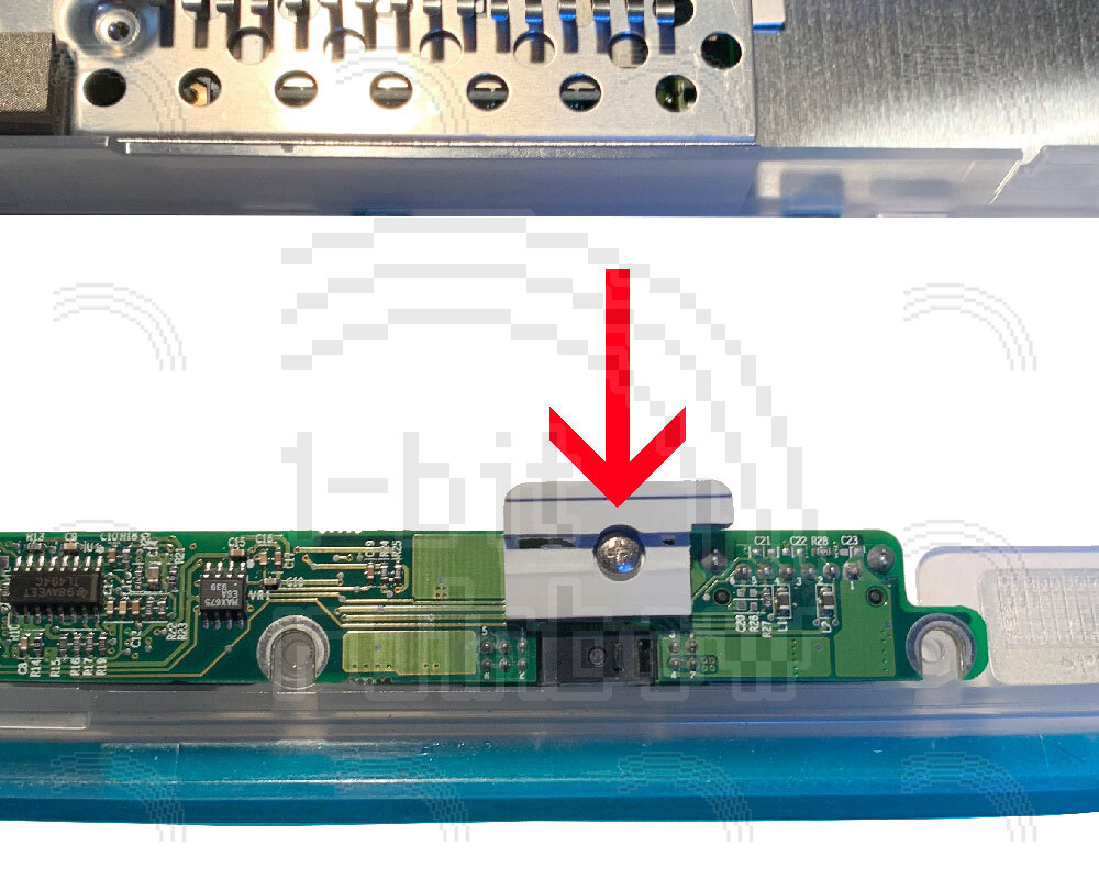 Original Apple, single Philips 7.3m, dome-headed, countersunk battery/sleep board screw for all the iBook G3 Clamshell FireWire and FireWire SE ranges. One of these secures the trackpad button support and battery board to the bottom case.