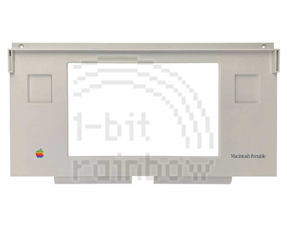 Original Apple display bezel for the Macintosh Portable. This is the later version with 2 screw holes, usually found on the backlit model.