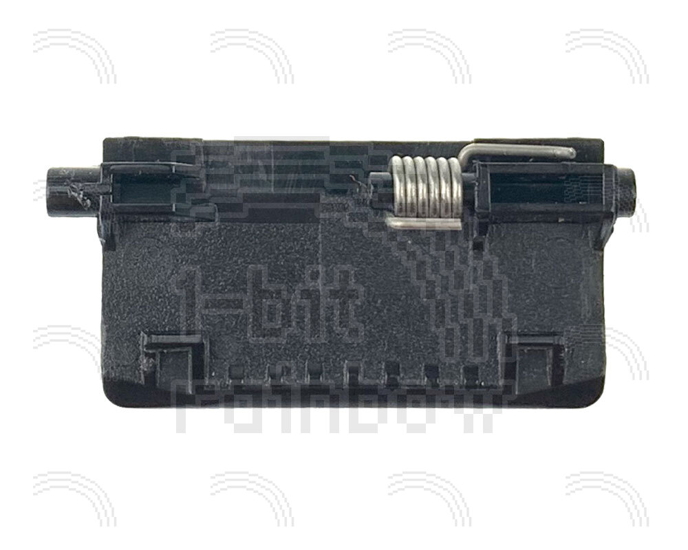 Original Apple lid latch assembly for the 14.1" display models of PowerBook G3 Wallstreet and PDQ. This includes the plastic button and spring. To fit to the display bezel, insert the the longer lug first then gently flex the bezel to slide the shorter lug (spring end) in place. To remove, follow in reverse.