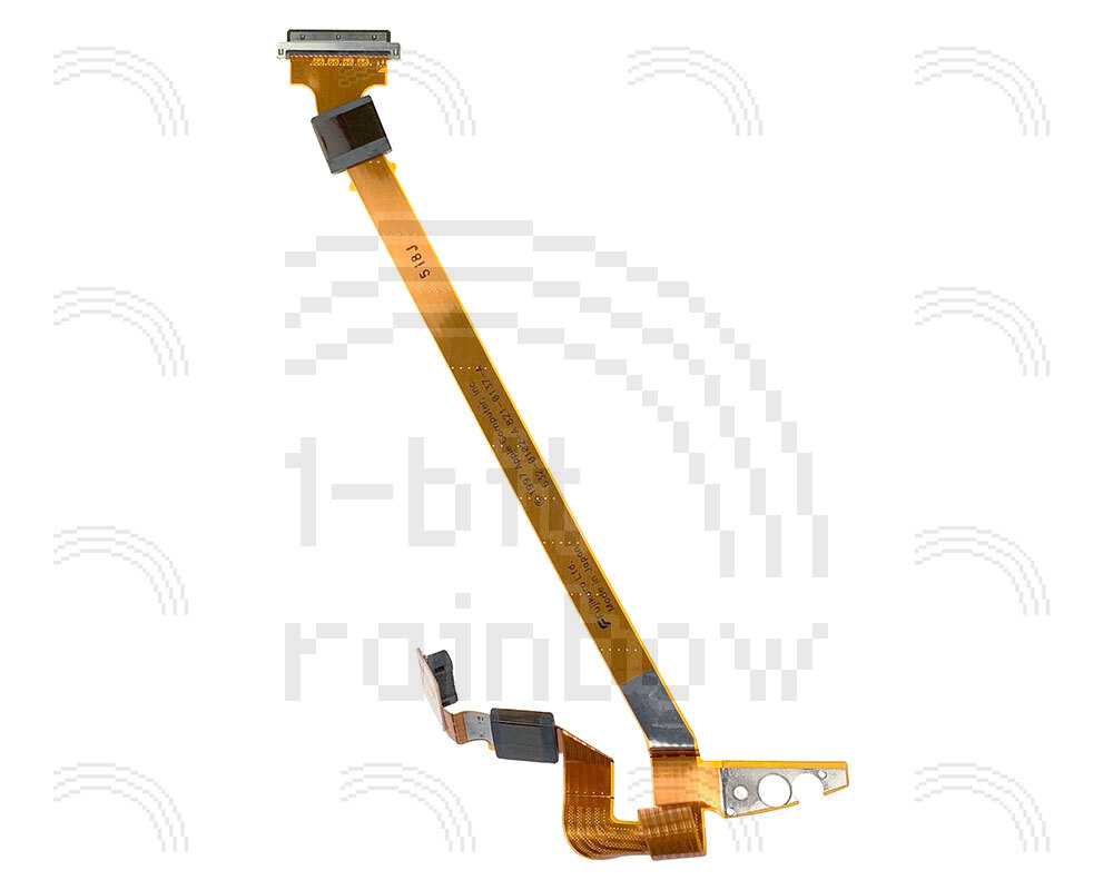 LCD data (LVDS) flex cable for the 14.1" display models of Wallstreet & PDQ PowerBook G3. This cable connects to the logic board, passes around the left hand hinge and then connects to the back of the LCD panel within the lid. It will NOT work with the 12" logic board.