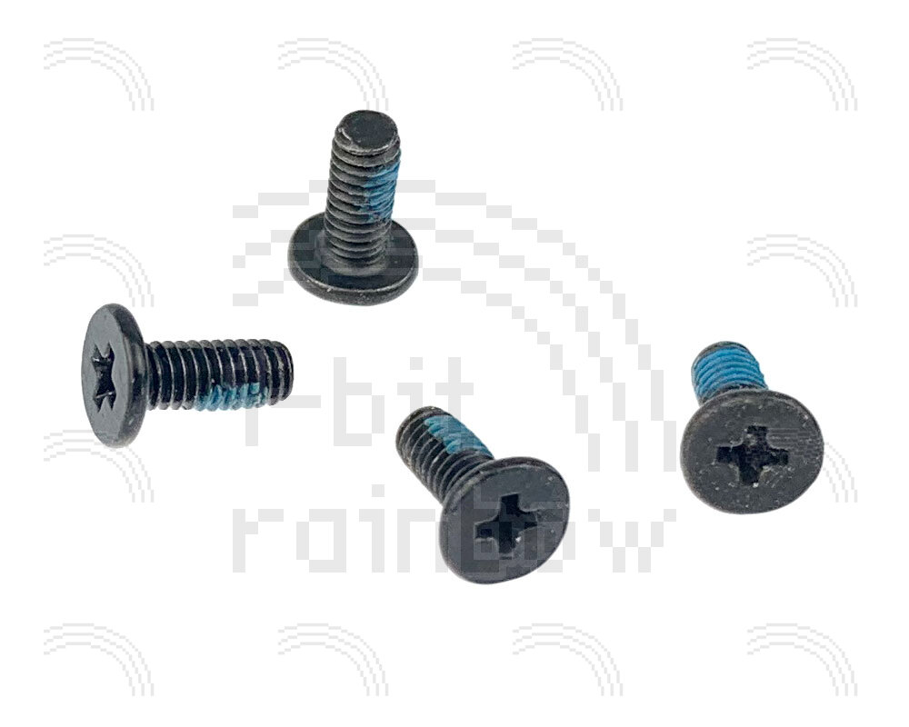 4 x original Apple black Philips 6.6mm display bezel screw for the Macintosh PowerBook G3 Lombard and Pismo ranges. Six of these secure the display bezel to the lid panel; four under self adhesive rubber bumpers, and two under stickers. Four secure each clutch and LCD bracket to the display bezel.