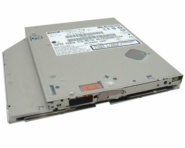 Apple branded, used, tested TEAC DV-W28SL slot loading 12.5mm ATA superdrive. The iBook G4 range use a manufacturer specific bezel which clips onto the front of the optical drive and so this drive can only be used in an iBook G4 if it is replacing another TEAC drive.