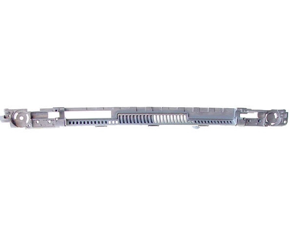 Internal alloy rear display mount block for the 867MHz 12" Aluminium PowerBook G4. This part provides the rigid platform onto which the display is mounted. It also houses the speakers.