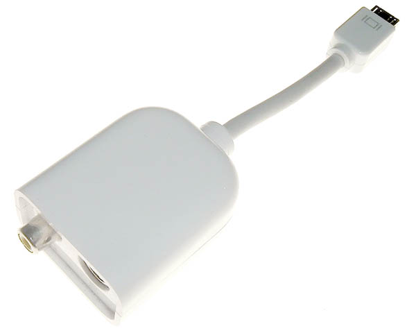 Fully tested, original Apple, mini-VGA to video adapter cable. Used to connect the mini-VGA Video Output port on your iBook, PowerBook G4 (12"), eMac (with AirPort Extreme), or iMac 1GHz (17") to any S-video or composite video enabled device.