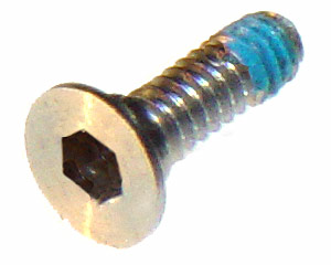 Machine finished hex screw for the 12" Aluminium PowerBook G4. There are two of these custom screws located at the bottom left and right corners of the screen surround.