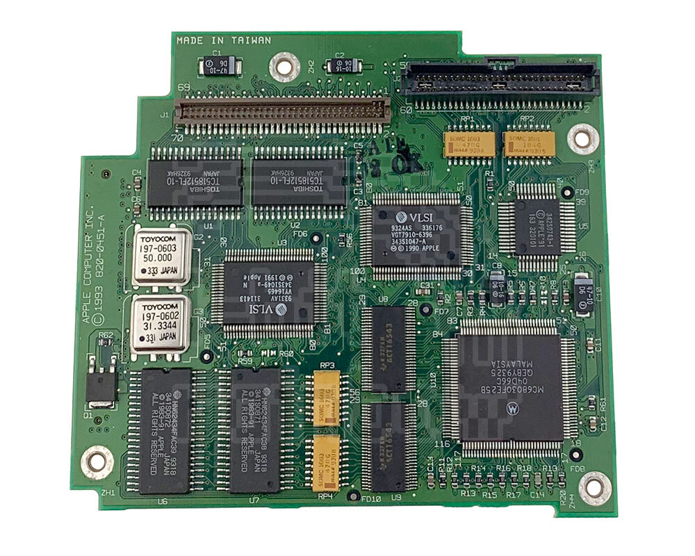 Original Apple, fully tested PowerBook 145B daughterboard containing the 25 MHz 68030 processor, 4MB of soldered onboard memory and one memory slot. Although interchangeable with the 145 daughterboard, the 145 board only has 2MB RAM soldered although the total addressable memory of the machine is still only 8MB. This processor card will work on the Powerbook 140, 145, 145B and 170.