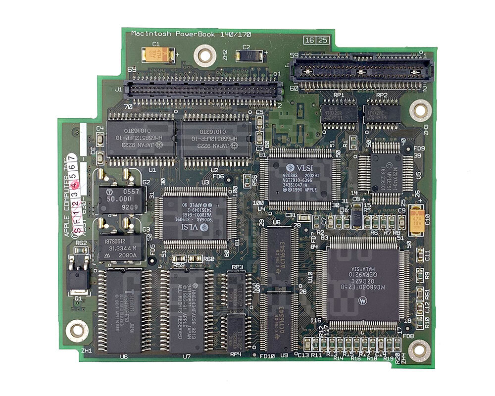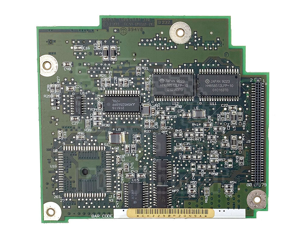 Original Apple, fully tested PowerBook 145 daughterboard containing the 25 MHz 68030 processor, 2MB of soldered onboard memory and one memory slot. Although interchangeable with the 145B daughterboard, the 145B board has 4MB RAM soldered although the total addressable memory of the machine is still only 8MB. This processor card will work on the Powerbook 140, 145, 145B and 170.