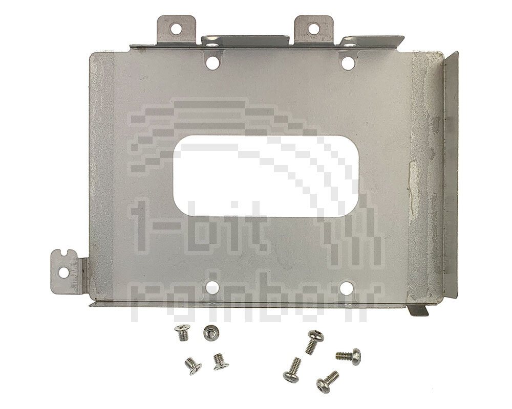 Original Apple PowerBook 150 hard drive mounting bracket including the drive insulator sheet, 4 screws to attach the hard drive and 4 screws to attach the bracket to the bottom case.