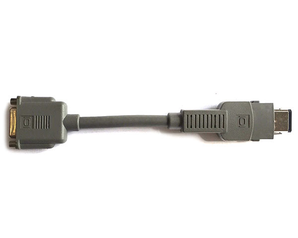 Original Apple display adapter for the Macintosh PowerBook 160, 165, 165c, 180 and 180c. This allows an Apple 15-pin (D15) monitor connector to connect to the proprietary compact mini-15pin connector on these PowerBooks.