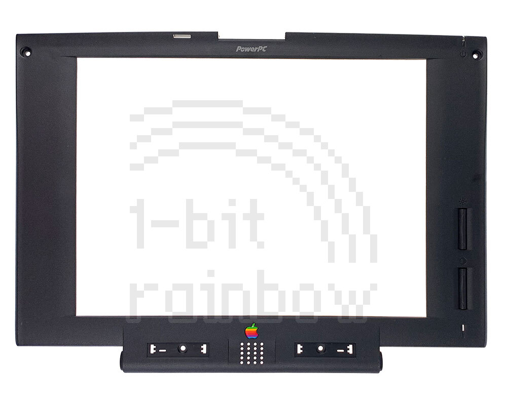 Original Apple display bezel for the greyscale (MFSTN) PowerBook 5300 models. This does not include the lid catch mechanism, name badges or speaker. Although physically interchangeable with the PowerBook 190 (greyscale), this bezel has "Power PC" printed on the top of the bezel.