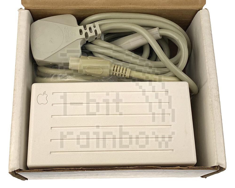 New, retail boxed, original Apple 220/240V external power supply for the Apple IIc including UK mains cable. This is not suitable for the Apple IIc plus.