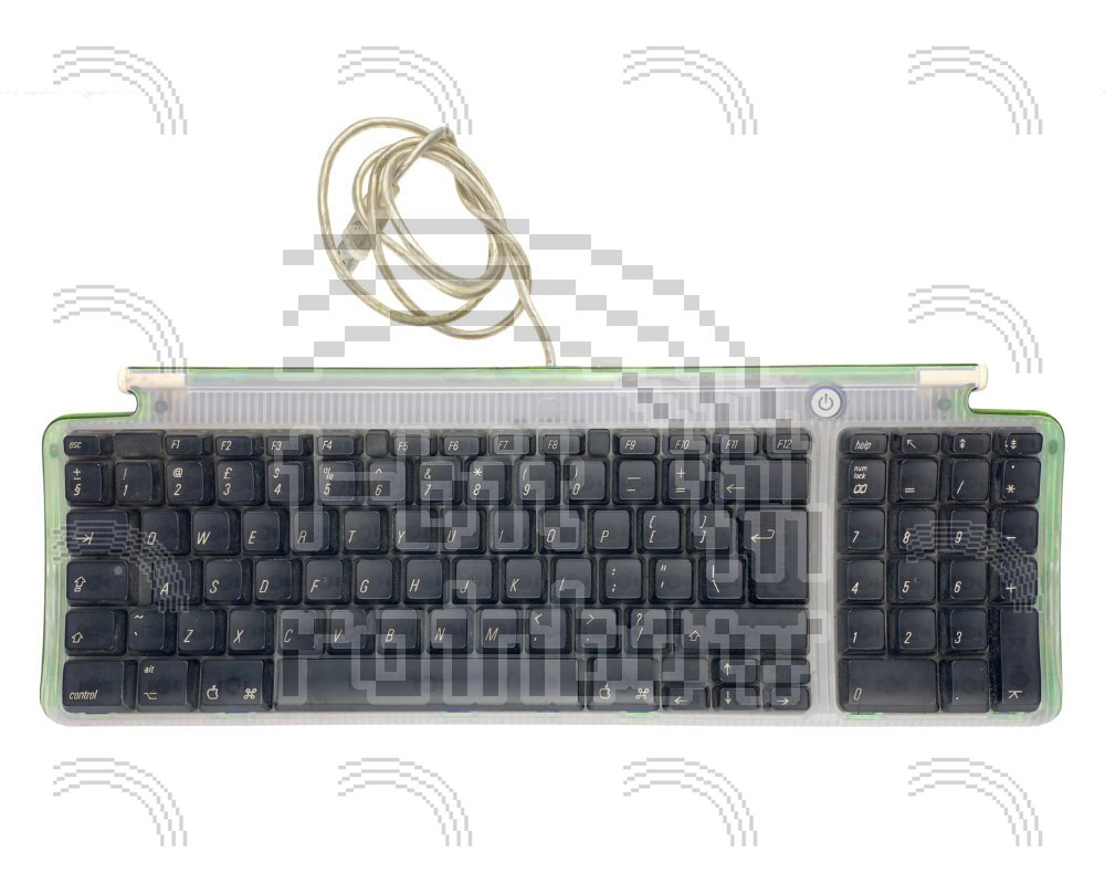 Original Apple Lime green coloured USB external keyboard. This was originally suppled with the iMac G3 but can be used on any USB equipped Mac. This keyboard has an integrated power-on button but does not feature an eject key.