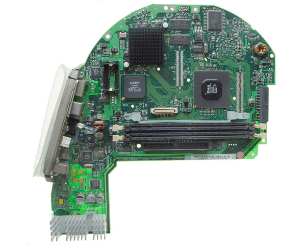 Logic board (mother board) from a 400MHz DV iMac G3. Includes 2 x USB 1 ports, 1 x FireWire 400 port, 100MB EtherNet, 56K Modem and audio in & out.