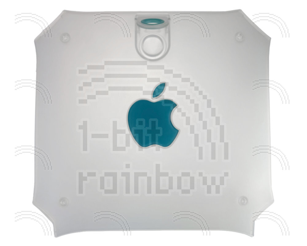 This is the translucent plastic outer side panel, Apple logo and latch (including blue rubber grommet) for the PowerMac G3 Blue & White models. This attaches to the main side access door and is secured by 4 external hex bolts and two internal Phillips screws that screw into the latch assembly. It also has two clips behind the Apple logo which can only be released by lifting up the main logic board.