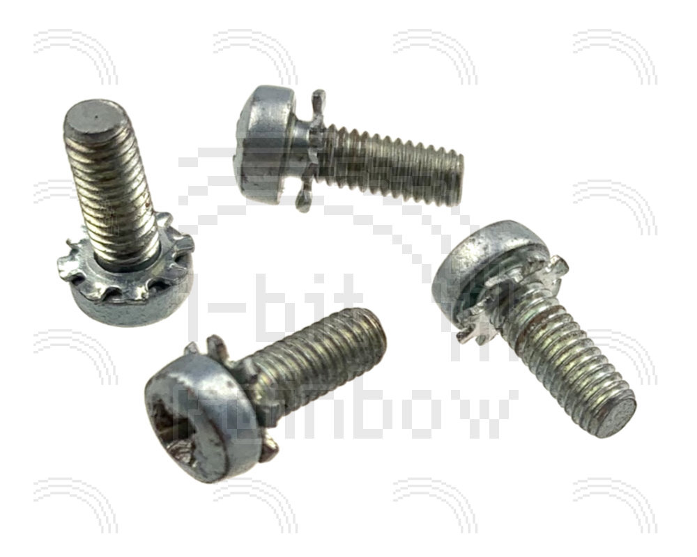 Full set of 4 original Apple, Philips floppy disk drive carrier screws for the Macintosh 128K, 512K and Plus. These secure the drive carrier to the internal chassis.