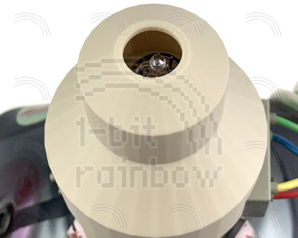 3D printed CRT yoke protection cap for the internal 9" monochrome CRT (cathode ray tube) used in the original Macintosh 128K, 512K, Plus, SE & SE/30 models. The rear of the tube is extremely fragile and the slightest knock can crack the glass. This cap is precisely design to snap firmly over the fragile part to provide protection when the CRT is removed from the machine for storage or shipping. It can also be used while working inside the Mac to prevent accidentally knocking the yoke. The part is printed using PLA+ for additional strength.