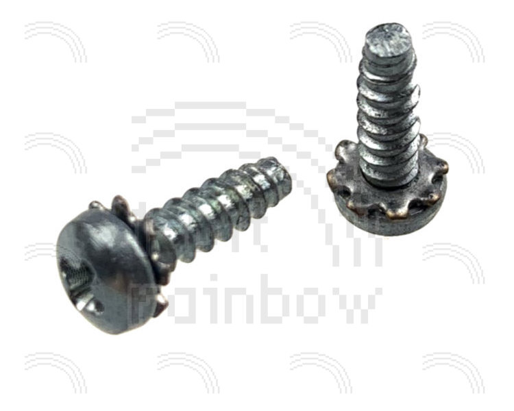 2 x original Apple, silver Philips, self-tapping, sweep/psu board screws for the Macintosh Plus. Three of these secure the sweep board to the internal chassis and one secures the earth lead to the chassis. These are functionally the same as the black ones used in the Macintosh 128K and 512K.