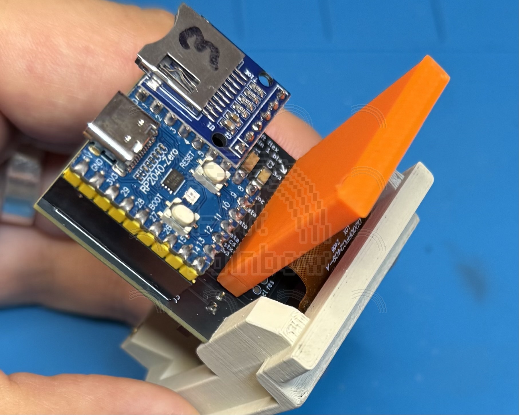 We designed this 3D printed tool for our own use when assembling pico-mac-nanos to avoid damage to the 40-pin vertical LCD flex cable socket. It applied even pressure to close the clamp bar and reduces the risk of bending the socket.